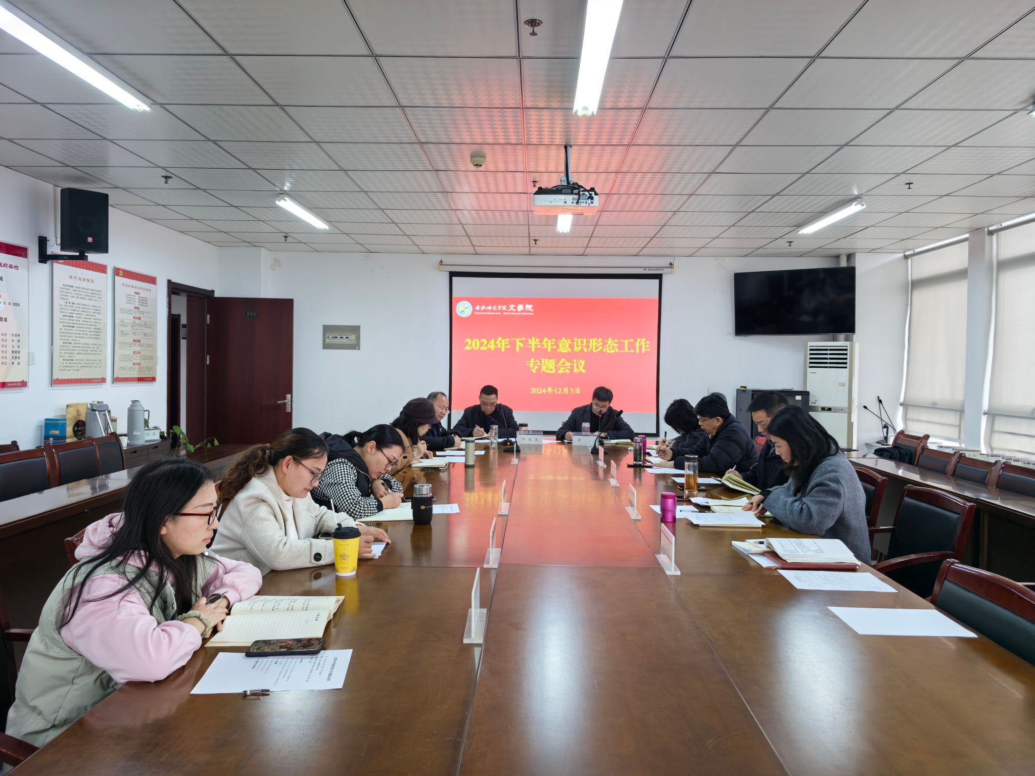 12月3日下午,ok138cn太阳集团在行知楼802会议室召开2024 年下半年意识形态工作专题会议,学院党政班子、党支部书记、系部主任和管理人员参加会议。会议由学院党委书记许锃主持。