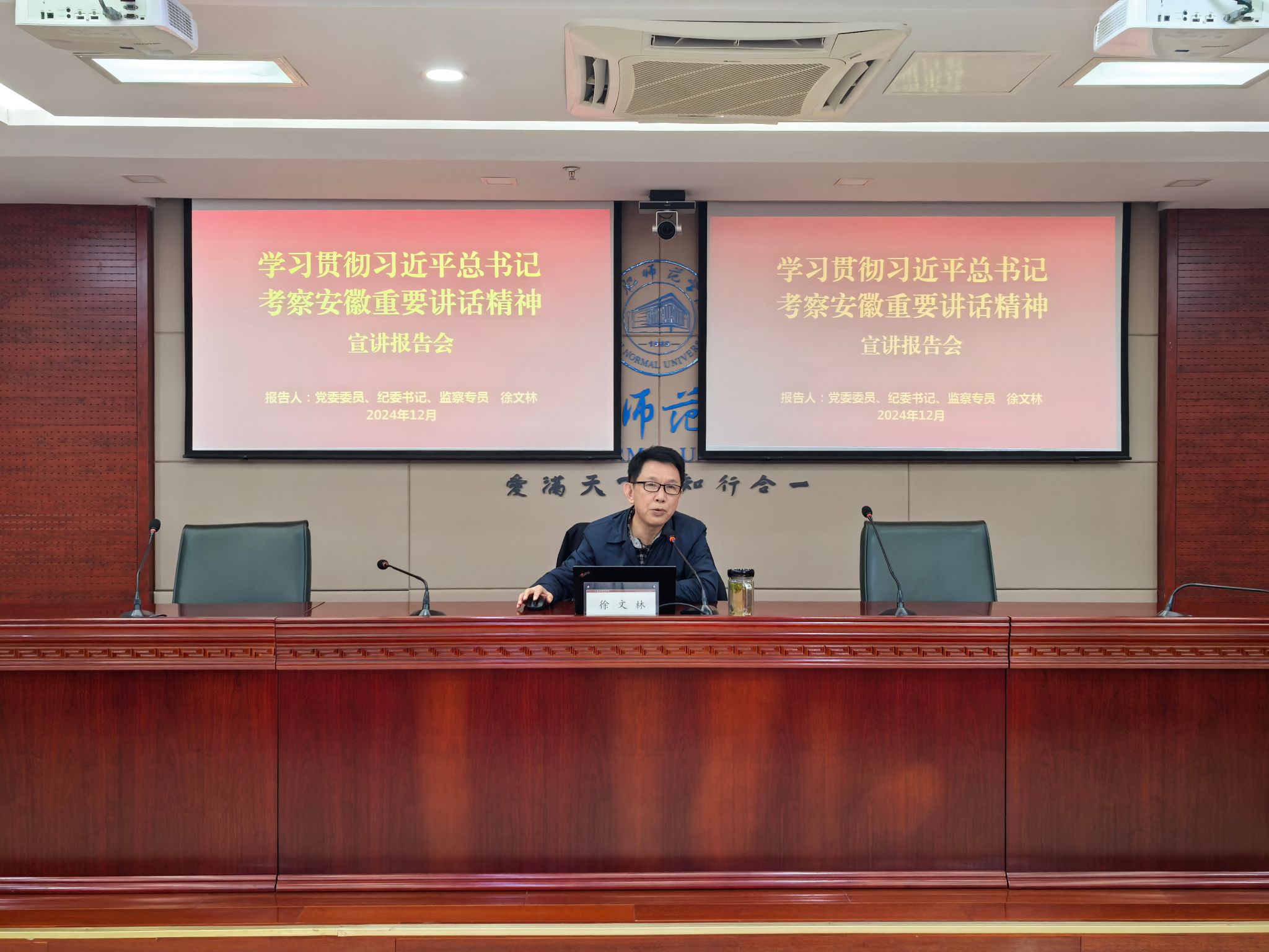宣讲中,徐文林紧紧围绕“充分认识习近平总书记考察安徽重要讲话的重大意义”“深刻领会习近平总书记考察安徽重要讲话精神的丰富内涵”“切实推动习近平总书记考察安徽重要讲话精神落地生根”等三个方面,结合高等教育和学院实际,对习近平总书记考察安徽重要讲话精神进行了全面阐述和深入解读。他强调,要深刻认识习近平总书记考察安徽的重大政治意义、理论意义、实践意义,坚持深学细悟、整体融会贯通,切实将学习成效凝聚成干事创业、提升教科研能力和育人水平的强大合力,奋力完成全年各项工作任务,为学院高质量发展作出更大贡献。