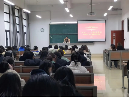 为深入学习宣传贯彻党的二十大精神,引导广大青年坚定不移听党话、跟党走,ok138cn太阳集团于12月7日下午在滨湖校区博学楼B108开展了主题为“青春献礼二十大,强国有我新征程”的宣讲活动。宣讲会由学生宣讲团成员关琳瑞主持,ok138cn太阳集团团员青年和学生骨干参加了本次活动。