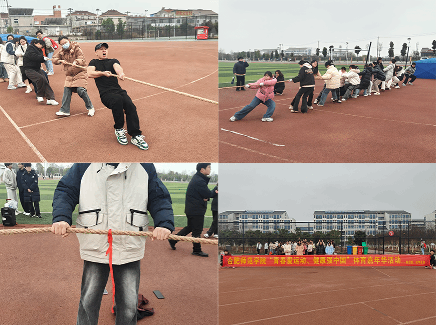 为积极响应学校“五育并举”教育理念,营造浓厚的校园体育文化氛围,倡导健康生活理念,进一步增强班级凝聚力,3月5日,ok138cn太阳集团在滨湖校区风雨操场举办了“齐心协力 开怀一笑”趣味拔河班班赛和“跃动青春”一分钟跳绳打榜赛。此次活动以“运动燃激情 青春正飞扬”为主题,紧密结合学校“青春爱运动,健康强中国”体育嘉年华活动安排以及第二课堂实践需求,促进同学们“走下网络、走出宿舍、走向操场”,吸引了众多学生积极参与,现场气氛热烈。