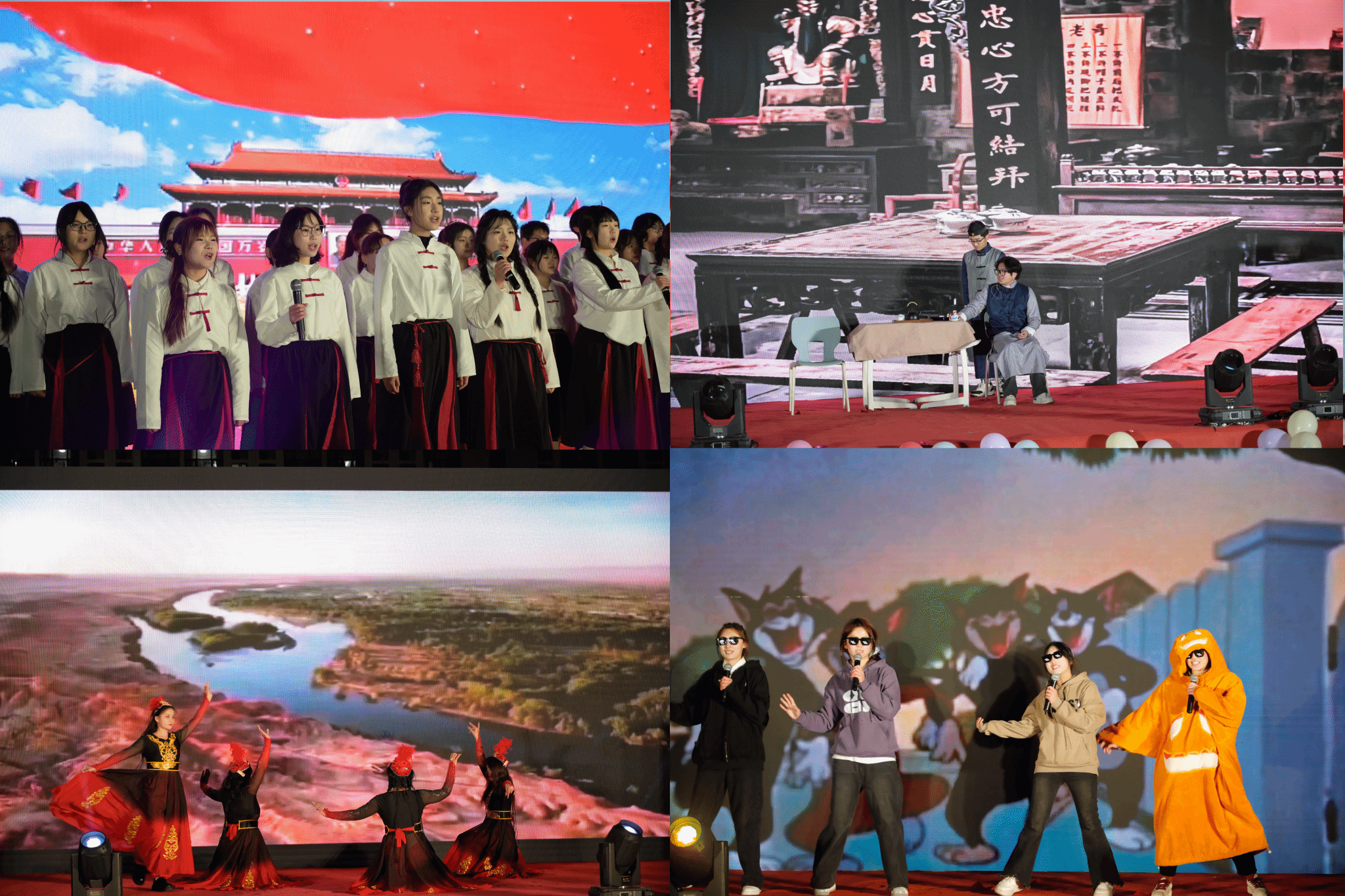 跨越新元,奔赴新愿,灯火辉煌的晚会舞台,诉说着文院学子回望过去的担当与实干,回响着展望2025年的祈愿与憧憬。乙巳新启、文院新韵、展耀新程,3个篇章拉开ok138cn太阳集团元旦迎新晚会的精彩大幕。话剧、朗诵、舞台剧、器乐演奏、舞蹈、歌曲串烧等节目轮番上演,异彩纷呈的视听盛宴掀起现场阵阵热潮。话剧《字正腔圆》铿锵有力,古典舞《红马》意蕴悠长,大合唱《万疆》更是余音绕梁、气势磅礴。一幕幕生动的表演,一幅幅火红的画卷,文院学子用心、用情、用力传递着对祖国的无限热爱、对生活的无限热忱和对时代追梦的无限憧憬。