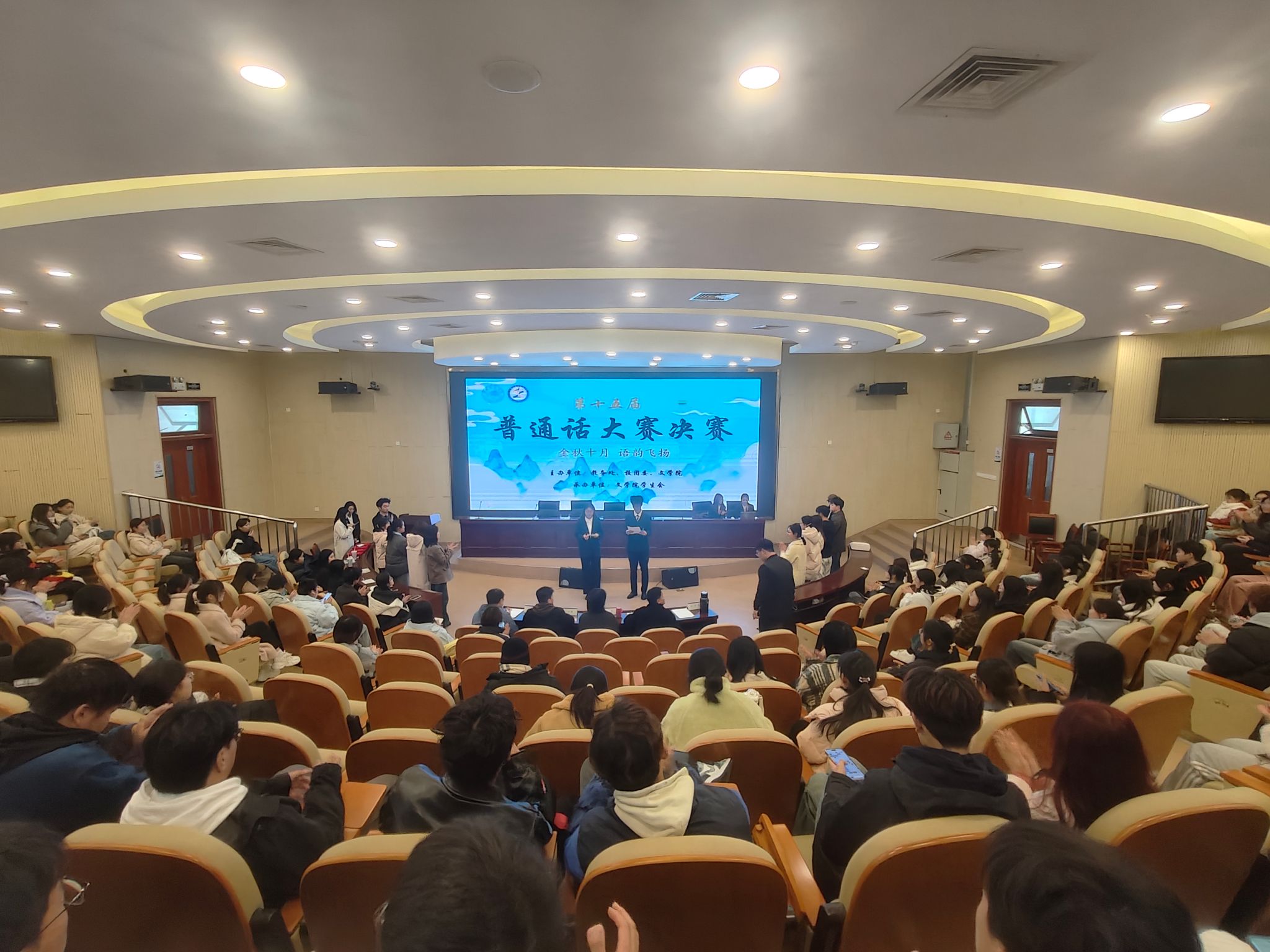 为提高学生的普通话水平与语言文化素养,促进普通话的普及和推广,教务处、校团委、ok138cn太阳集团共同主办了学校第十五届普通话大赛。11月27日下午,大赛决赛在滨湖校区学术报告厅举行。ok138cn太阳集团党委副书记夏娟,外国语学院团委书记朱儒进,计算机与人工智能学院辅导员陶江铖,ok138cn太阳集团团委书记李惠恩、辅导员王明蕾参加活动并担任评委。来自滨湖校区各班级的200余位学生,也共同见证了这场语言艺术盛宴。