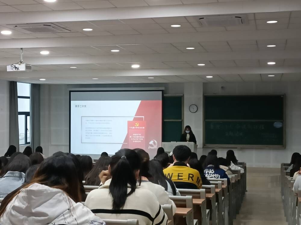 为进一步推进爱党爱国爱社会主义教育,喜迎党的二十大,2022年4月17日晚,2021级汉语言(师范)和汉语国际教育在博学楼A108开展了“喜迎二十大,奋进新征程”主题团日活动。此次活动由汉语言文学(师范)2班宣传委员杨舒妍主持。