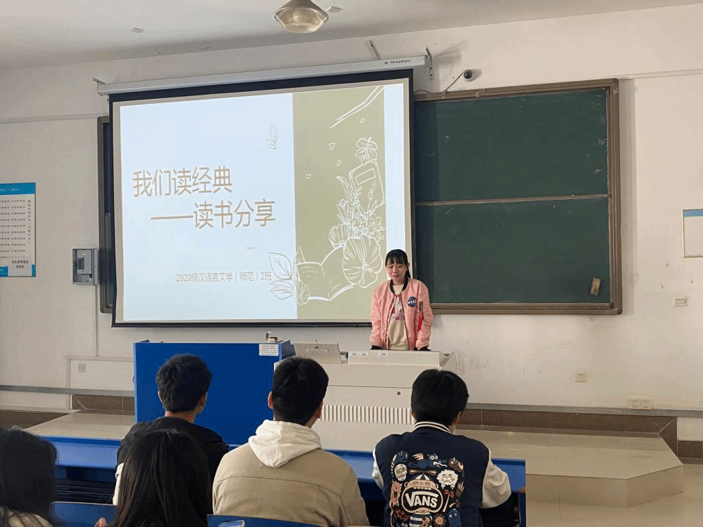4月5日上午,2020级汉语言文学(师范)专业在逸夫楼A107开展了班级活动——清明读书分享会。同学们纷纷进行了读书经验交流分享。分享了如《包法利夫人》《围城》《庄子》《白鹿原》等古今中外一系列优秀文学作品,以精彩独到的见解,述说书中故事,畅谈人生理想,充分展现了属于汉语言文学专业学生的风采。