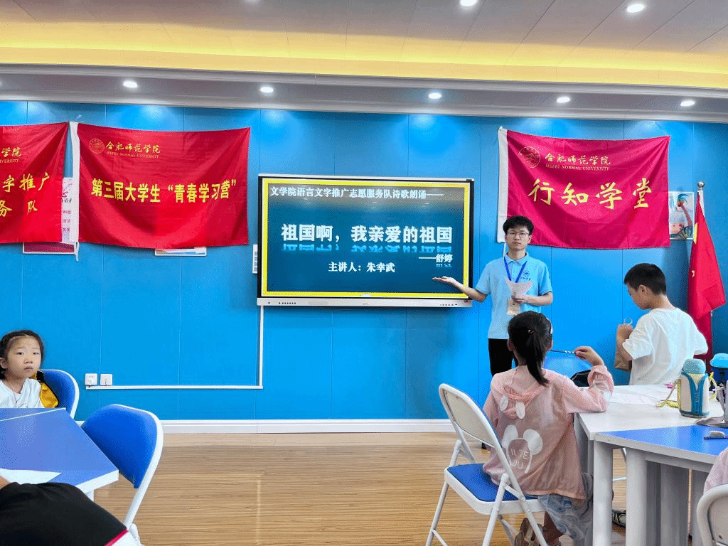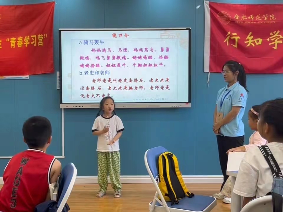 7月15日,霍山行知学堂积极响应ok138cn太阳集团号召,将普通话推广与霍山行知学堂特色课程口语表达相结合,将语言文字推广融入课堂。