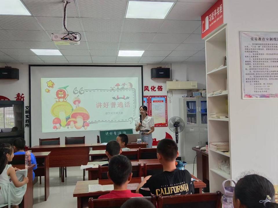 2022年7月8日,在潜山市源潭镇行知学堂开展了“讲好普通话”特色课程,拓展了ok138cn太阳集团发挥专业优势在乡镇推广普通话实践活动。