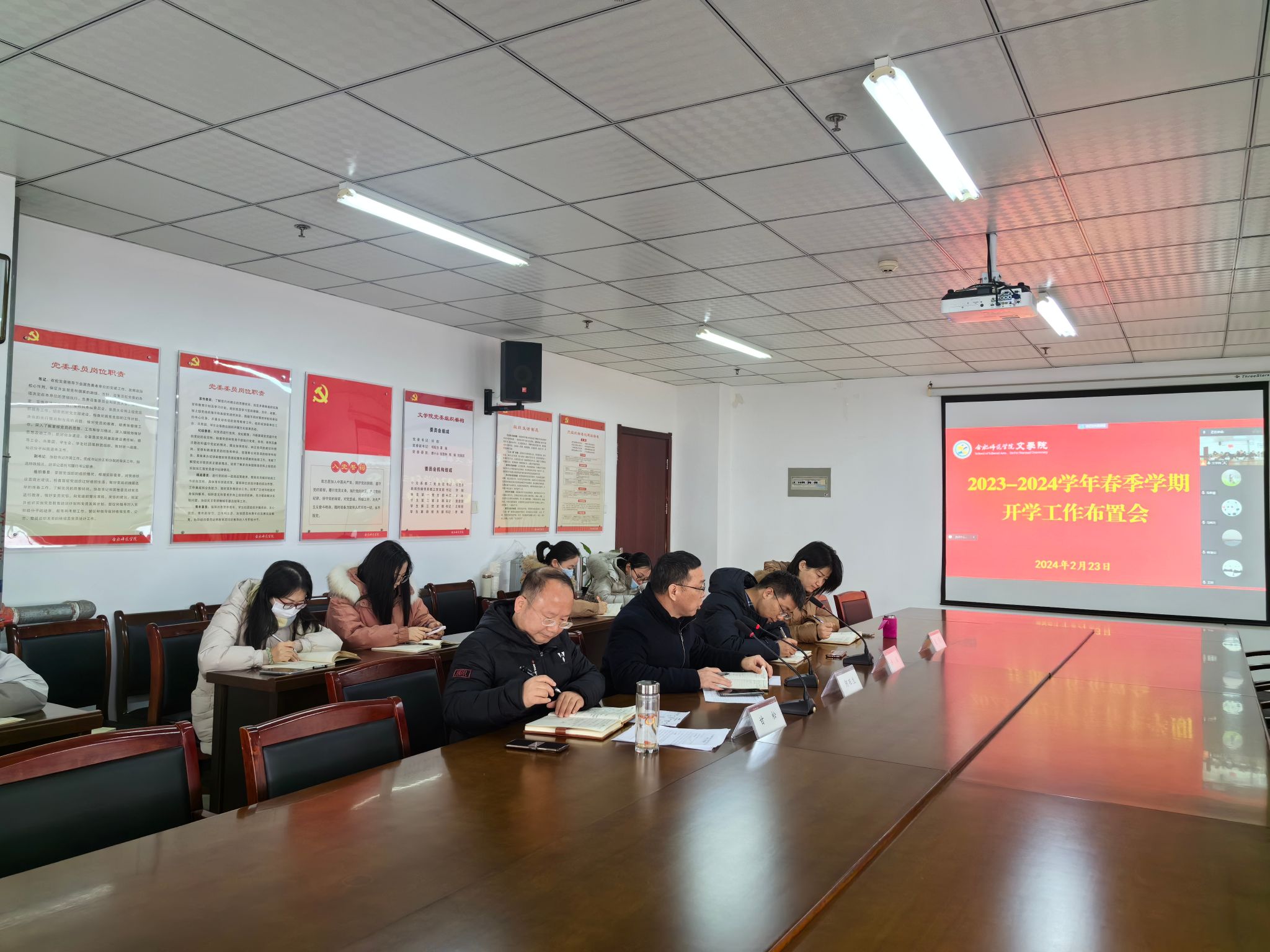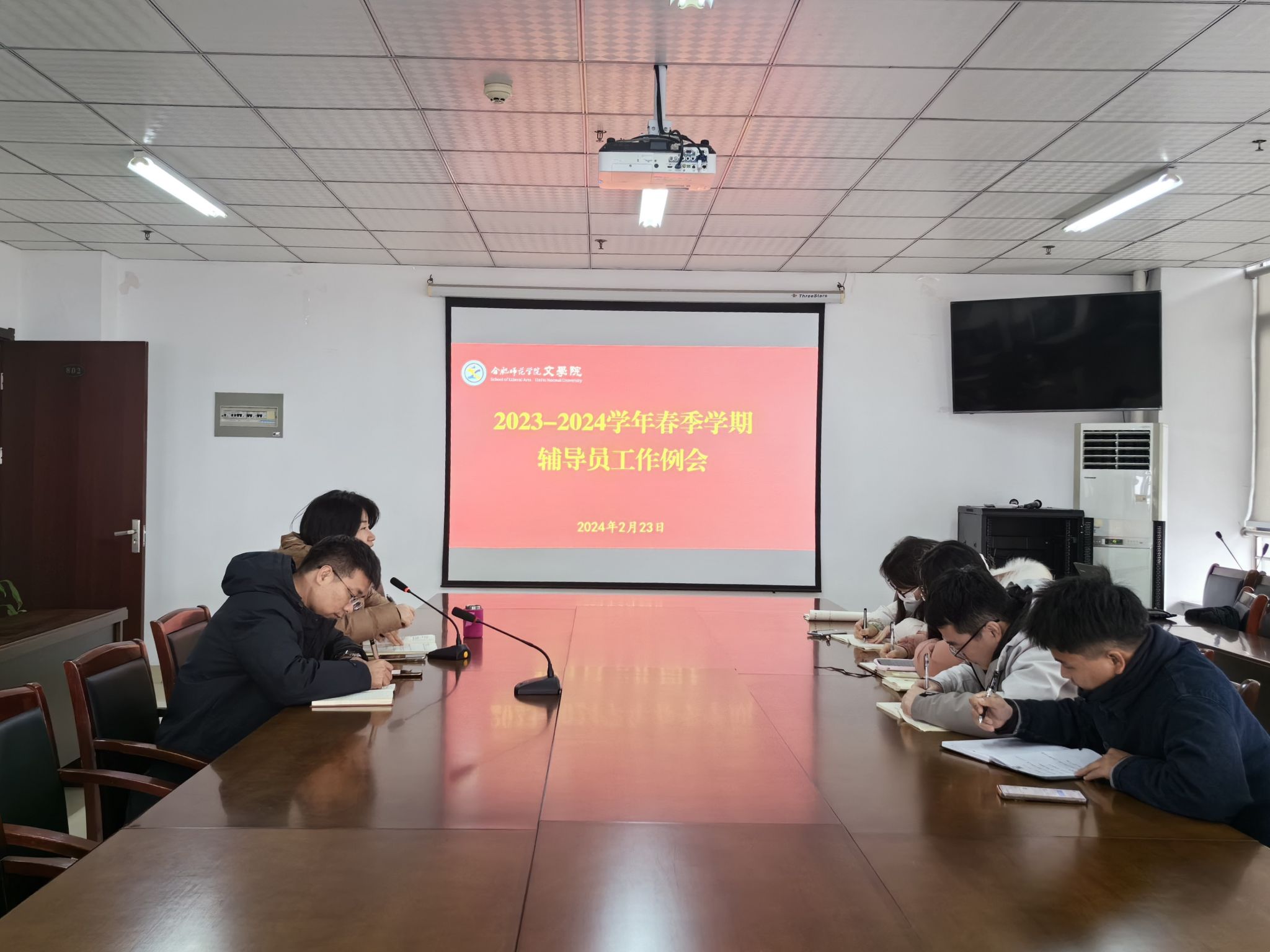 为了扎实做好新学期开学准备,确保开学各项工作顺利、有序进行,2月23日上午,ok138cn太阳集团在行知楼802室召开2023-2024学年春季学期开学工作布置会,会议以线上线下结合的方式召开,院领导班子成员、全体教职工参加会议。会议由党委书记许锃主持。