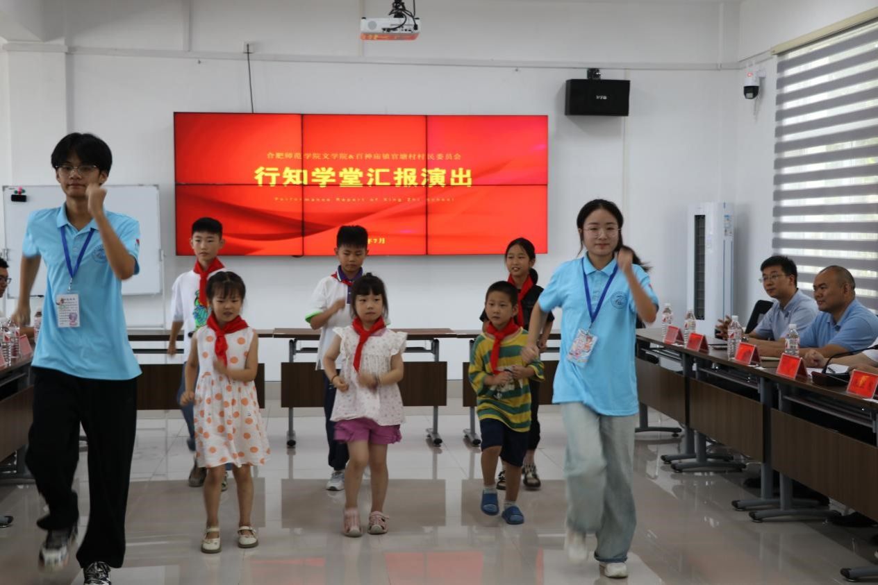 在行知学堂,徐成钢一行饶有兴致地观看小先生编排的学员小合唱、诗歌朗诵等文艺演出,为小学员的精彩表演点赞,对小先生的教学效果给予肯定。徐成钢在与小先生们亲切交谈中,详细询问了学堂开办情况,课程与教学安排及食宿等情况,勉励小先生要珍惜锻炼机会,锤炼实践能力,书写为中国式现代化挺膺担当的青春篇章。