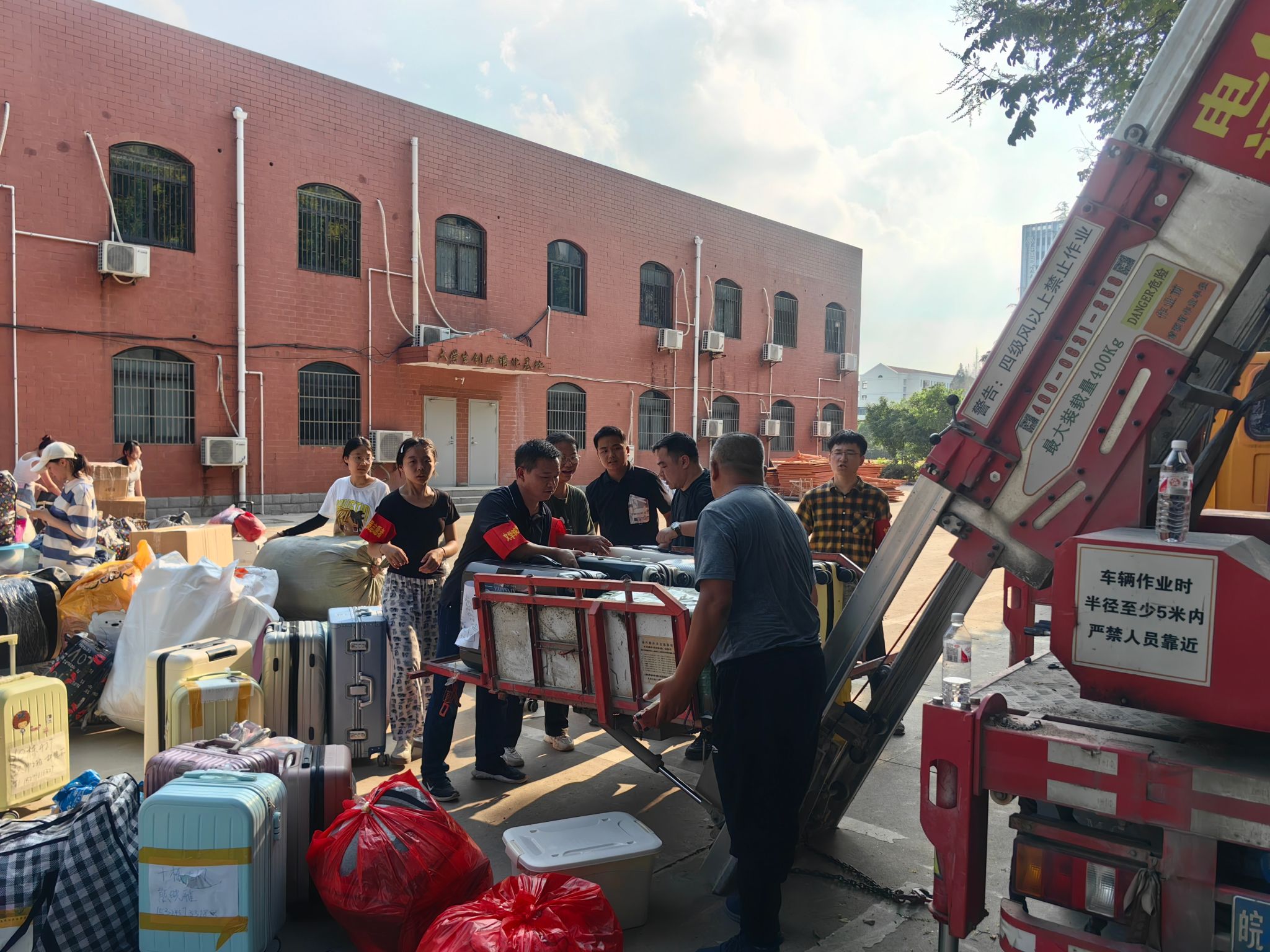 党员先锋、学生干部、青年志愿者冲锋在前,主动接待引导、搬运行李,红色志愿袖章成为搬运现场一道亮丽的风景线;各班级学生互帮互助、携手行动,展现了青年人的蓬勃朝气和友爱精神。两校区搬迁工作秩序井然。为减轻学生上下楼行李搬运压力,学院联系了可升降作业的工程车辆,负责搬运行李下楼、上楼,获得了学生的一致好评。