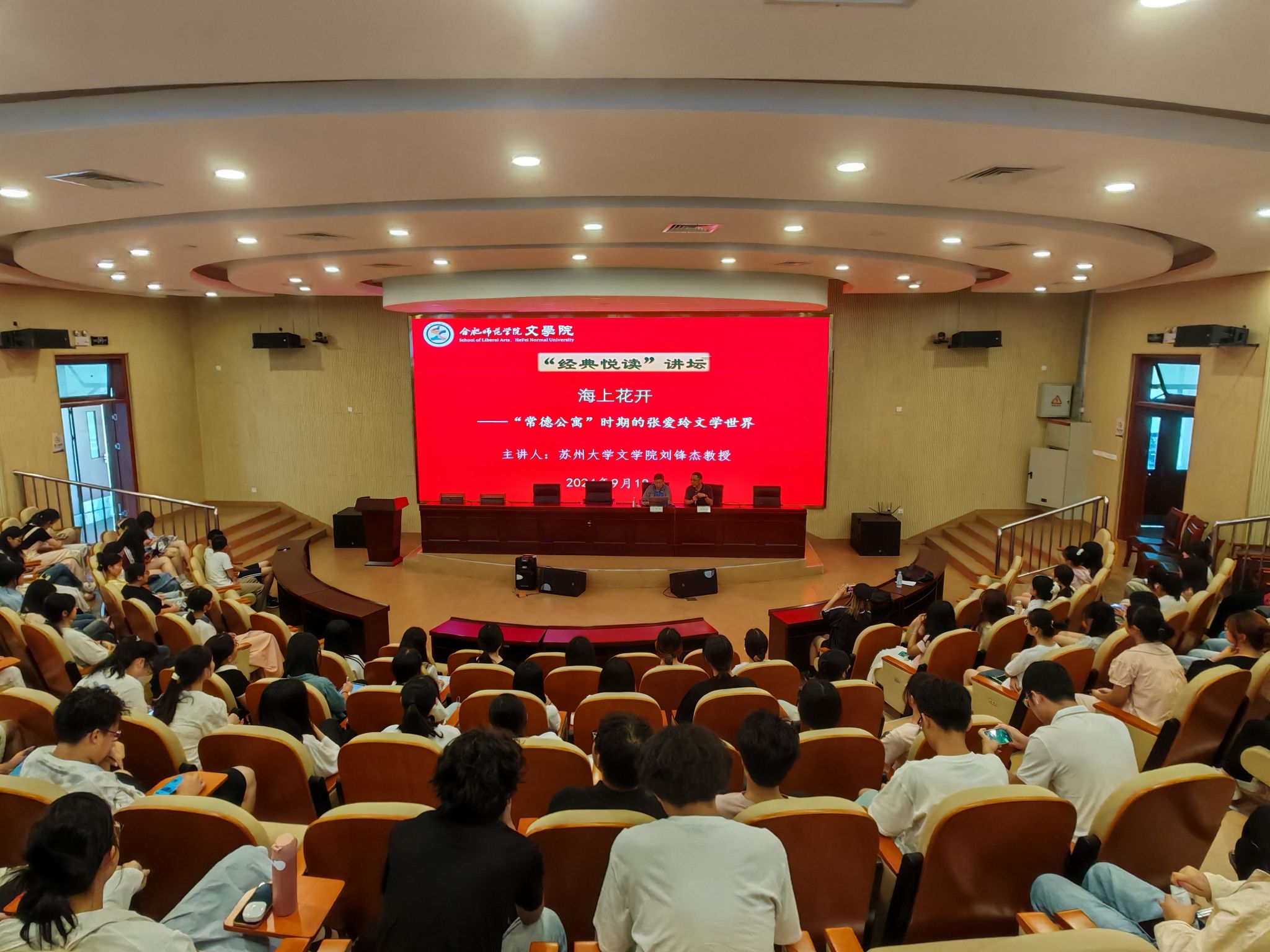 为浓厚学院学术氛围,倡导阅读启迪心灵,引领学生走进文学经典世界,ok138cn太阳集团筹划“经典悦读”讲坛系列学术报告,广邀名家学者为ok138cn太阳集团学生开讲授课。9月18日下午,“经典悦读”讲坛首场报告在滨湖校区学术报告厅开讲,苏州大学刘锋杰教授应邀来校作题为《海上花开——“常德公寓”时期的张爱玲文学世界》学术报告。报告会由ok138cn太阳集团院长何旺生主持。