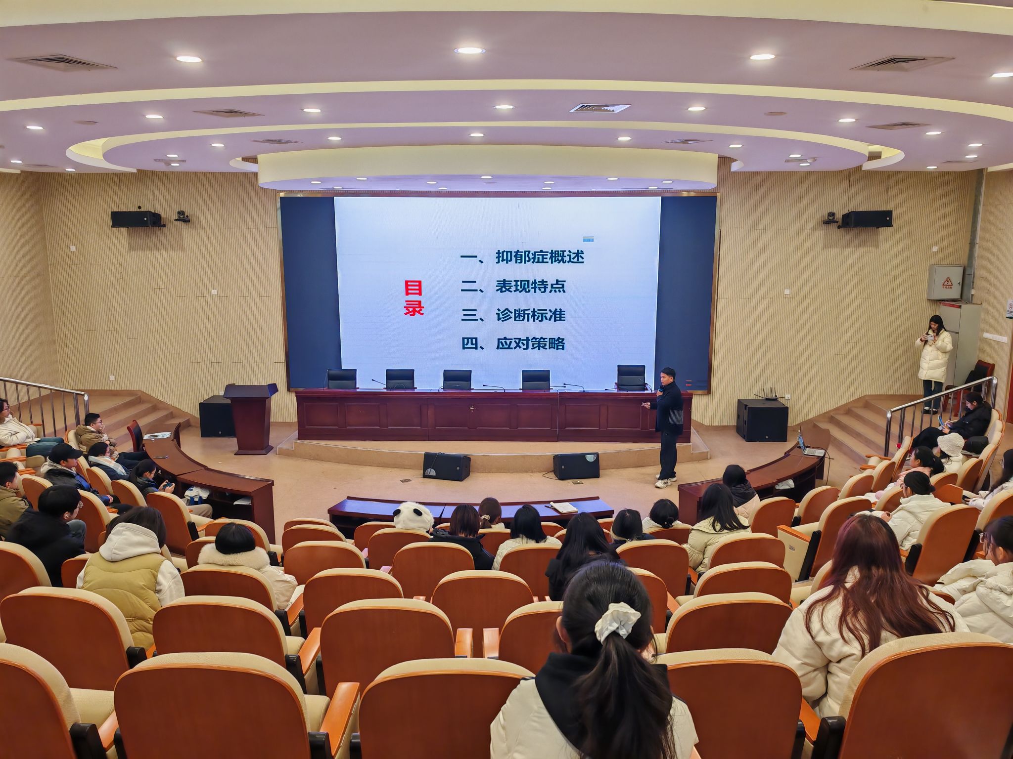 辅导员李惠恩围绕“认识抑郁症”主题作培训辅导,就抑郁症识别及应对方法展开讲解,并结合实际案例,阐述抑郁症干预的重要性与方法技巧,帮助学生骨干明确自身角色定位,提升工作能力。他还深入剖析了大学生常见心理问题的外在表现,如情绪的异常波动、社交行为的突然改变等,传授实用的识别方法、干预流程与技巧。