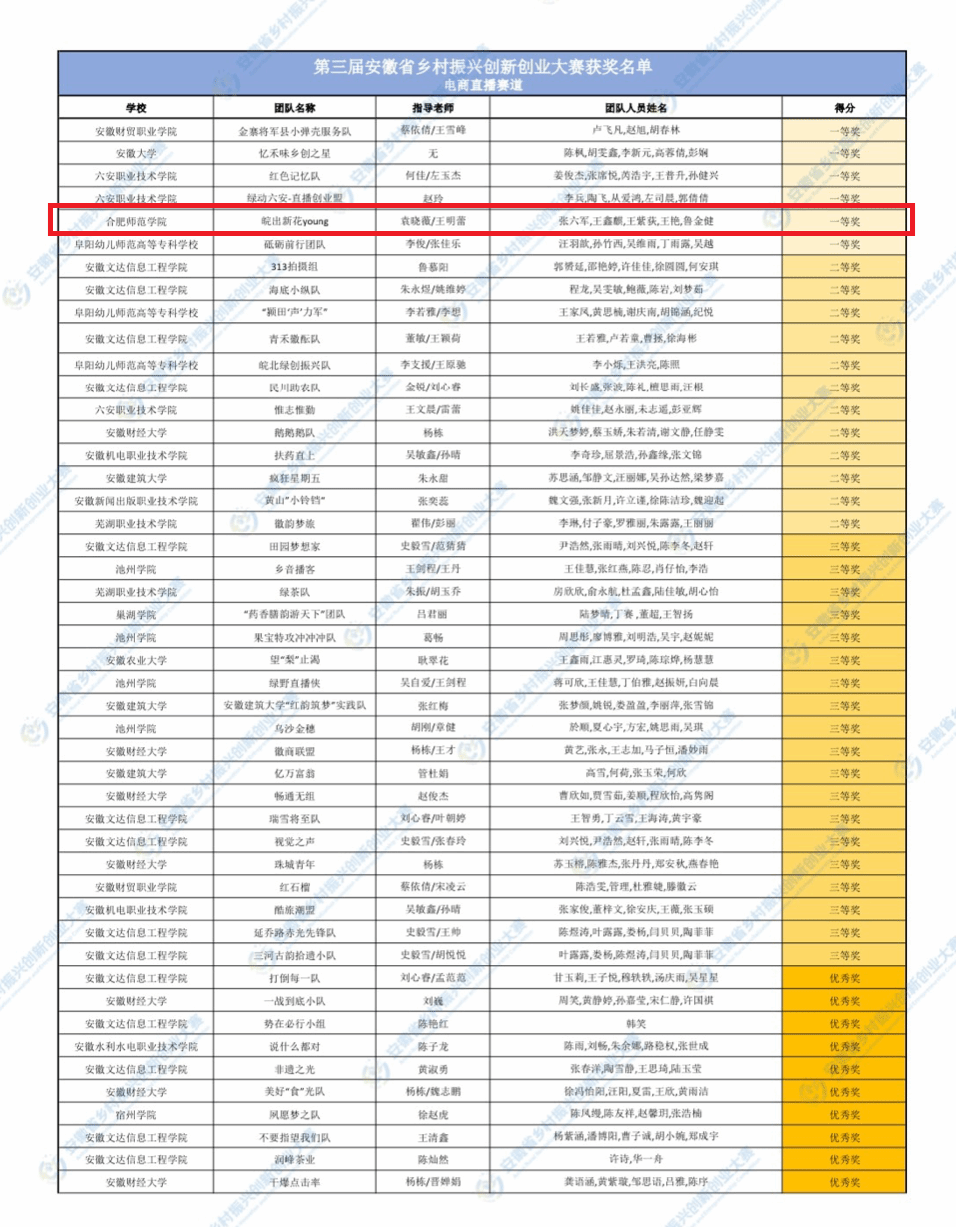 近日,第三届安徽省乡村振兴创新创业大赛评选结果揭晓,ok138cn太阳集团袁晓薇教授指导的“皖”出新花Young团队斩获电商直播赛道一等奖。团队成员共5人:张六军、王鑫麒、王紫荻、王艳、鲁金健,均来自2024级网络与新媒体专业(专升本)。