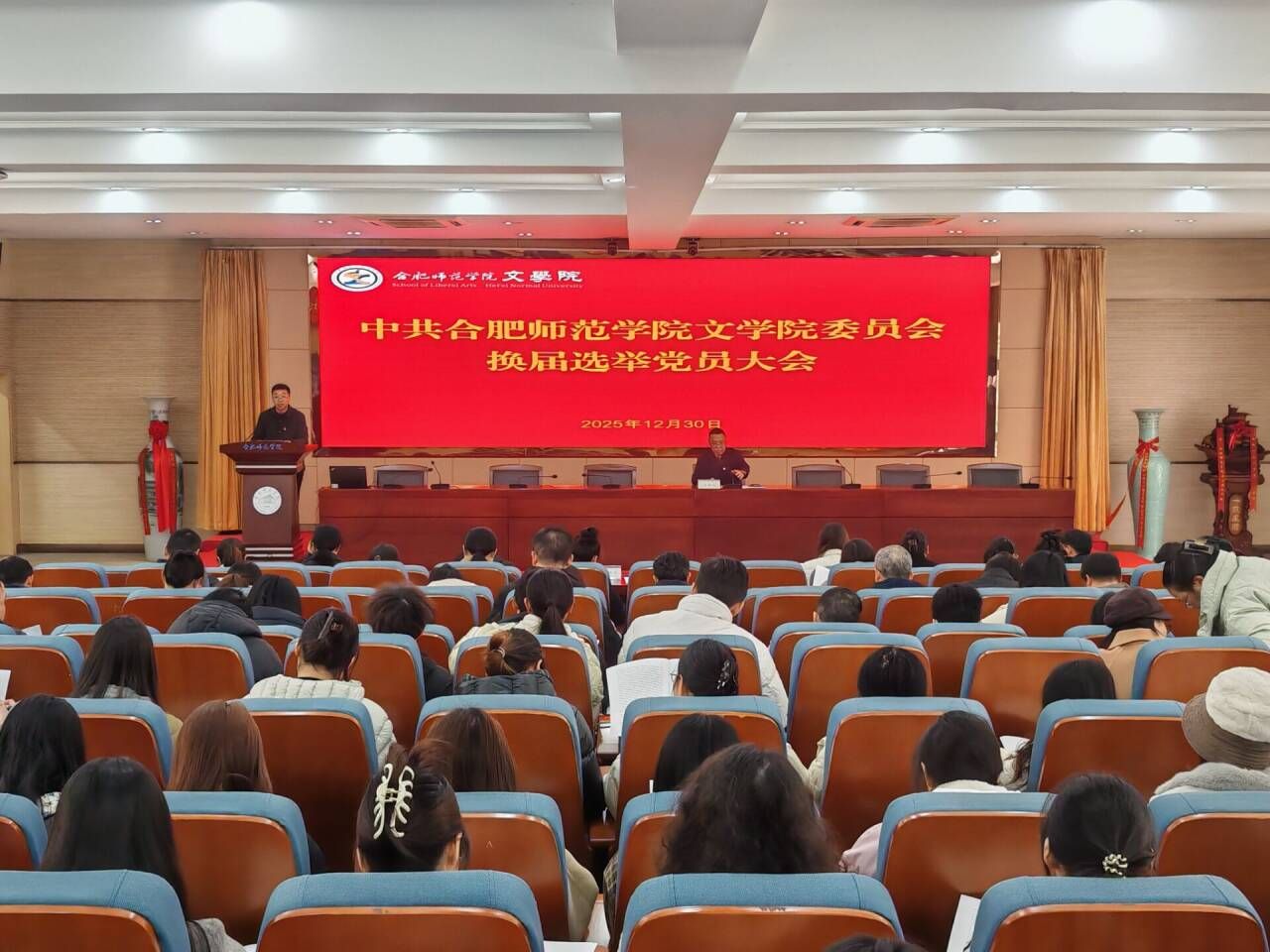 2025年12月30日上午,ok138cn太阳集团在锦绣校区学术报告厅召开全体党员大会,选举产生新一届党委委员、纪委委员。大会由学院院长何旺生主持。
