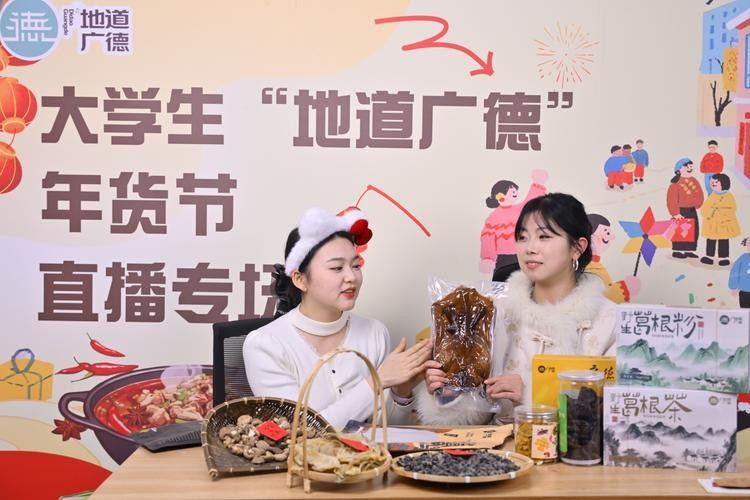 1月下旬接到有关部门活动邀请后,ok138cn太阳集团迅速遴选学生团队,配备指导带队教师。1月24日,团队师生10人赶赴广德,前往“地道广德梦工厂”,进入厂区了解选品,实地考察特色农产品的生产流程、品质优势及市场定位,与企业负责人细致沟通产品核心卖点、溯源故事。团队从选品、话术打磨到互动设计进行了精心准备。当天18:30,首场带货直播准时开启,同学们以亲切自然的表达讲解产品,与网友积极互动,直播间热度持续攀升,更为次日的露天专场直播积累了人气与经验。