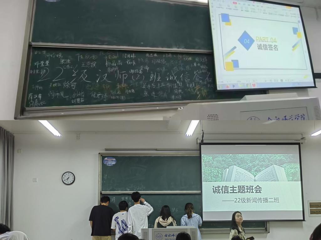 诚信,乃为人之本,人无信则不立。诚信是中华民族传统文化的精髓之一,也是社会大力倡导的道德风尚。为提高大学生诚信意识,ok138cn太阳集团组织各班级开展诚信签名活动。同学们纷纷在黑板上签名,表明自己履行承诺的决心。活动过程中,班级委员积极宣传个人诚信的重要意义,在广大同学中间营造出了“人人知诚信,人人讲诚信”的良好教育氛围。
