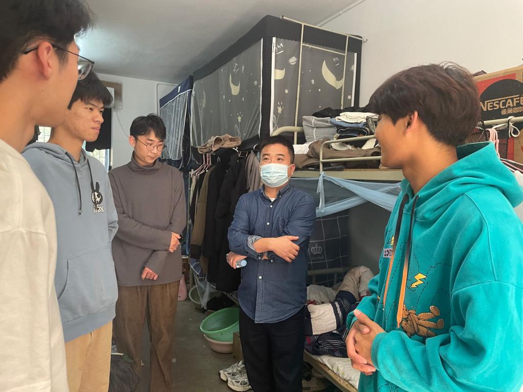 走访过程中,陈好详细了解了同学们在近期的日常生活和上课学习情况,并结合当前疫情防控形势叮嘱同学们严格遵循学校各项管理规定,每日坚持完成健康信息报送和核酸检测,牢牢树立疫情防控意识,共同筑牢疫情防控安全线。同时叮嘱同学们要注重个人及宿舍卫生,及时通风,确保宿舍安全卫生整洁。陈好鼓励同学们在学习之余要加强身体锻炼,注重身体健康,保持积极健康的心理状态。当问询同学们对现在的学习生活适应不适应,还有什么困难的时候,同学们纷纷表示疫情期间,学院在各方面考虑得很周到,目前学习生活一切都好,一定会谨记老师们的嘱托,严格遵守学校防疫要求和管理规定,自觉做好个人防护,认真做好学习规划,用实际行动积极配合学校做好疫情防控工作。