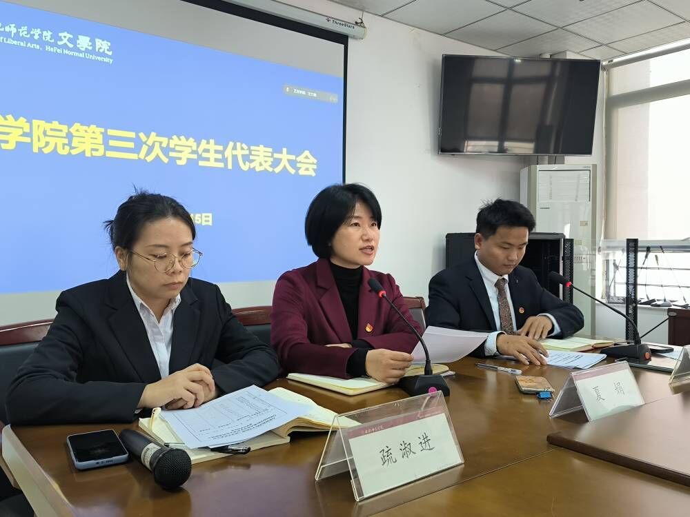 11月15日下午,ok138cn太阳集团第三次学生代表大会在锦绣校区行知楼802召开。学院党委副书记夏娟、团委书记李惠恩、团委副书记疏淑进和学生代表参加会议,会议由李惠恩主持。