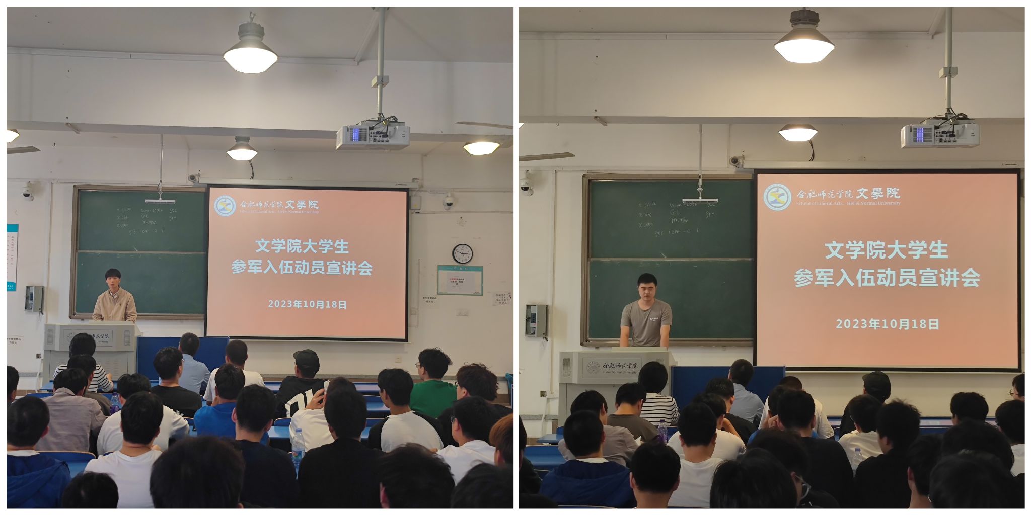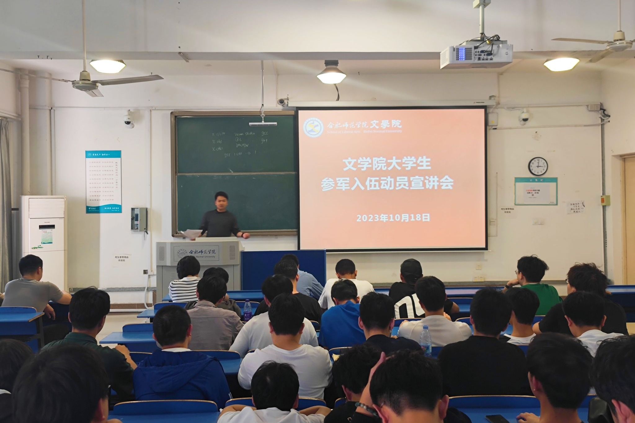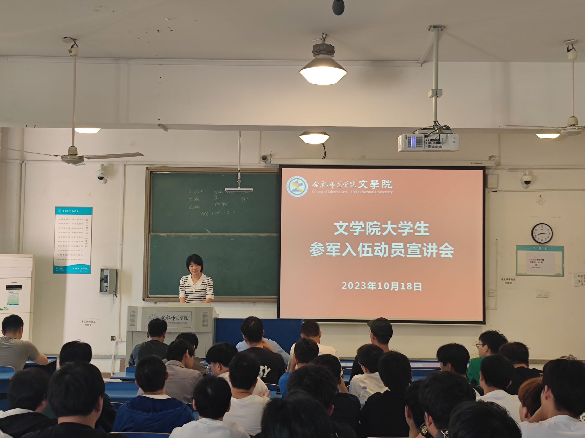 为进一步贯彻落实上级和学校关于征兵工作的部署和要求,鼓励引导学院学生积极应征入伍,激发青年学子报效祖国、献身国防的热情,10月18日,ok138cn太阳集团在逸夫楼A201召开2023年秋季征兵宣讲会。ok138cn太阳集团党委书记许锃、党委副书记夏娟、辅导员以及2020级、2021级男生参会,宣讲会由夏娟主持。