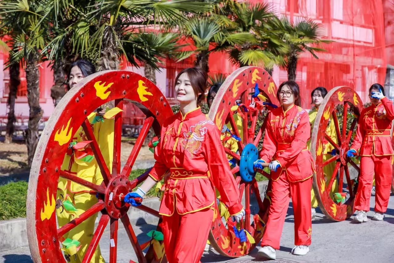 杨丽文响应黄山市黄山区文化旅游管理局的号召,在“黄山七四七 盛世太平年”为主题的非遗民俗踩街活动(非遗正青春板块)中,她与其他40余名大学生一起,在春节前夕参加黄山区非遗传承班,沉浸式学习和体验各类非遗,并且在大年初一参加省级非遗“轩辕车会”的展演,让广大市民和游客在欢乐、喜庆、祥和的节庆氛围中感受世界非遗中国春节的韵味和魅力,进一步增强了文化自信,厚植了家国情怀。