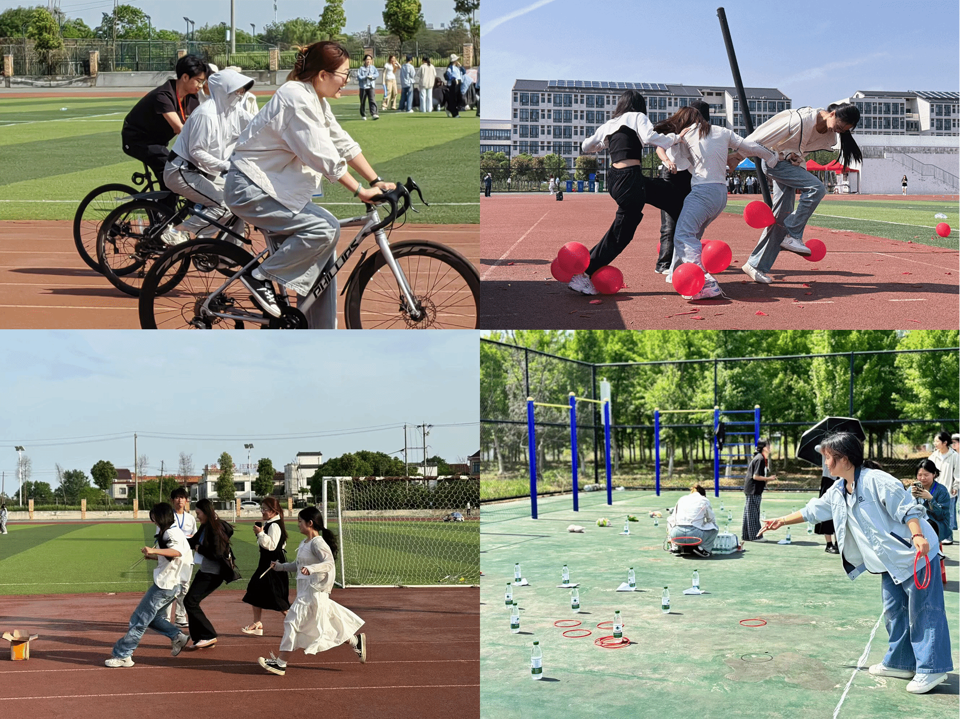 恰同学少年,风华正茂;逞飒爽英姿,青春激扬。为进一步丰富心理健康活动月,充实绚丽多彩的校园文化生活,呵护学生心理健康,4月25日,ok138cn太阳集团在滨湖校区田径场举行“心晴悦动 愈见彩虹”主题活动,以魔力套圈圈、七手八脚、慢骑自行车大赛、暴打尖叫鸡等15个趣味活动一键释压,点燃春日“多巴胺”。本次活动由ok138cn太阳集团团委,ok138cn太阳集团学生第二、三、四学生党支部共同发起,ok138cn太阳集团学生发展中心、学生会共同承办。