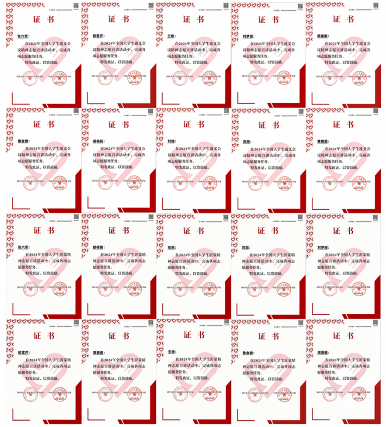 日前,为深入学习宣传贯彻习近平新时代中国特色社会主义思想和党的二十届三中全会精神,落实“强国复兴有我”群众性主题宣传教育活动相关要求,引导青年学生弘扬遵义会议精神、沂蒙精神,团中央青年志愿者行动指导中心联合有关单位先后发布了遴选大学生志愿宣讲团公告,ok138cn太阳集团网络与新媒体专业2024级学生张六军发起的“沂”心向党 “蒙”启新程(沂蒙精神)、“徽韵皖青 理响江淮”(遵义会议精神)等2支志愿宣讲团队成功入选。现已完成项目并圆满结项,团队全部成员均获结项证书。