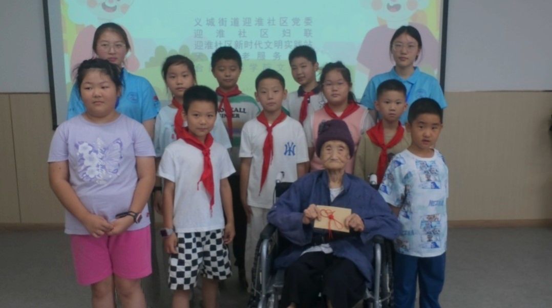 “百善孝为先”,尊老敬老爱老是中华民族的传统美德。7月12日,迎淮社区行知学堂11名小学员在“小先生”团队与社区工作人员的带领下,走进与社区毗邻的天与养老院,开展“童真伴银发 关爱暖人心”主题敬老实践活动。活动通过生活照料、文艺演出、心灵对话等形式,为老人送去温暖与欢乐,生动诠释了新时代青少年尊老敬老的精神风貌。本次活动特别增设“信暖银发”环节,小学员们将手写信件装入精心装饰的信封,每个信封上都缀有孩子们亲手编织的中国结,传递着浓浓敬老情。