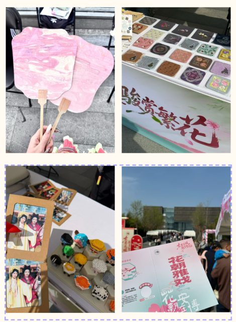 活动现场,我院学子精心筹备的原创文创、手工作品惊艳亮相春日市集,造型精巧、兼具文化元素的作品吸引了大批游客驻足参观、互动体验。学院网络与新媒体专业学子主动担当,发挥专业优势为现场人员提供全程专业摄影服务,用镜头捕捉花朝雅韵、定格活动中的精彩瞬间,为参与者留下了珍贵的影像记忆。在面塑、糖塑、水墨染扇等非遗手工体验环节,同学们满怀热忱、认真钻研,亲手操作、亲身感受,在指尖的灵动中体悟传统手工艺的匠心与温度,近距离领略非遗文化的独特魅力。
