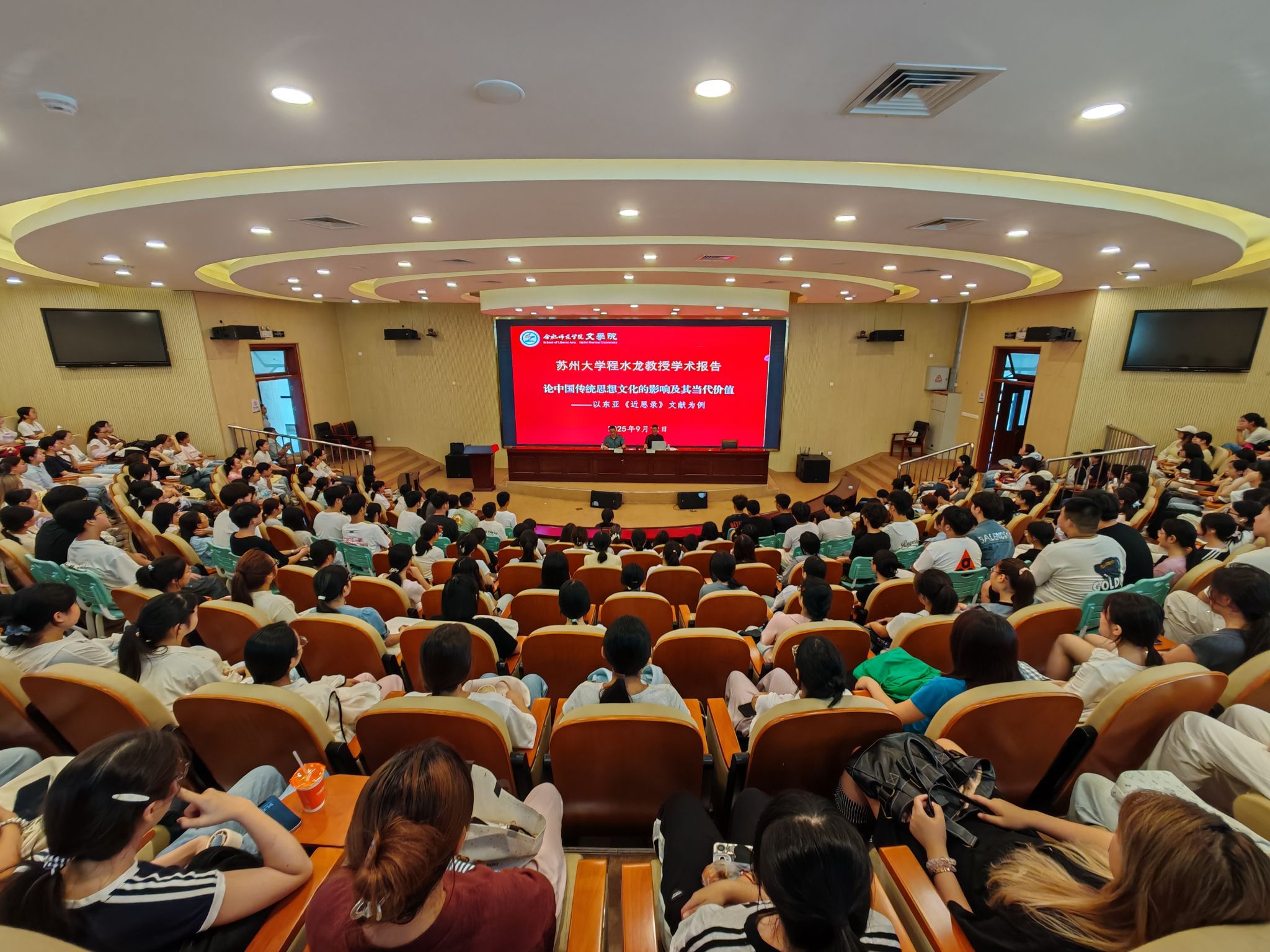 9月12日,ok138cn太阳集团新学期“经典阅读”讲坛在滨湖校区学术报告厅开讲,ok138cn太阳集团1998届汉语言文学专业校友、苏州大学程水龙教授,以“论中国传统思想文化的影响及其当代价值——以东亚《近思录》文献为例”为题作学术报告,以一部跨越千年的朱子学经典为切口,为现场300余名师生展开了一场关于中华文明连续性与文化自信的深刻对话,拉开ok138cn太阳集团70周年校庆系列学术活动的序幕。报告会由ok138cn太阳集团院长何旺生教授主持。