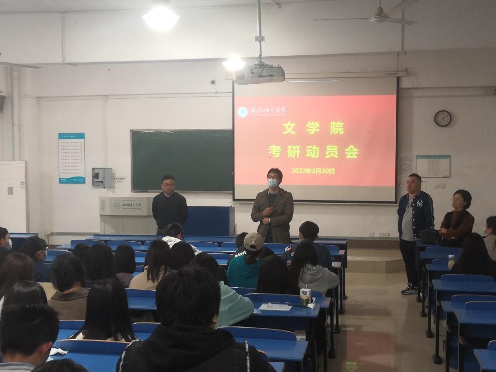 会议伊始,陈好结合当前疫情严峻形势,号召同学们遵守学校疫情防控规章制度。同时介绍了此次考研动员大会召开的重要性,希望同学们能够坚定考研之路、追逐青春梦想,并表示学院会尽全力为同学们升学深造提供良好的学习和生活环境。常娟结合ok138cn太阳集团考研特点,就当前我院考研形势做了整体概括和分析,指出我院老师将会全程对所有考研生进行指导和帮助,希望同学们要制定合理的学习计划,养成良好的备考习惯。