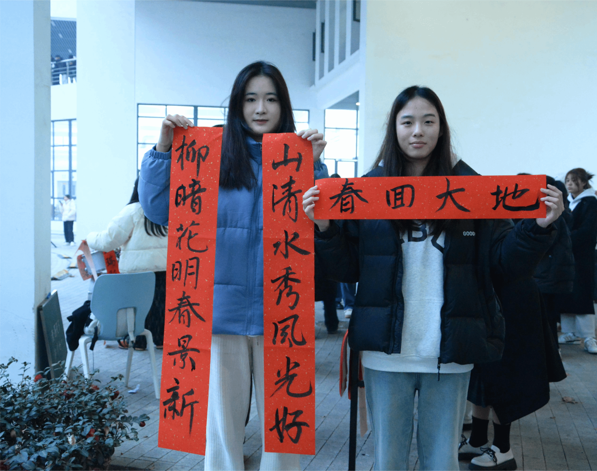 晚会正式开始前,ok138cn太阳集团学生现场书写春联,墨香四溢,红纸翻飞,行云流水的书法作品化为一对对红色春联,为全院师生送去最美的祝福。周荣代表滨湖校区综合管理办公室为观看晚会的同学送上了新年祝福。