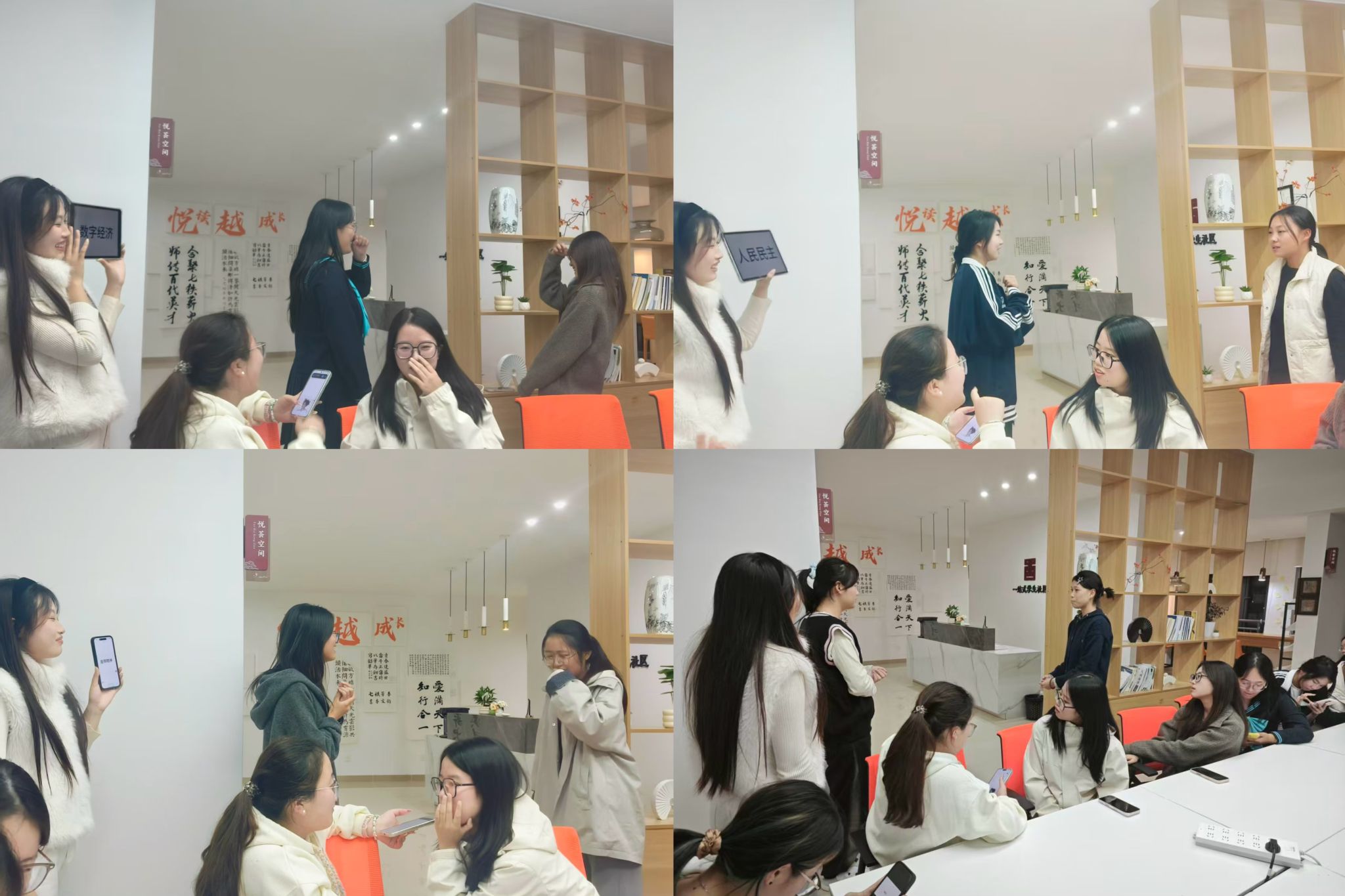 活动伊始,一段精彩的“新时代国家成就”短片迅速点燃了现场气氛。随后的核心互动环节,同学们两人一组,通过20张“新时代关键词”卡片展开竞猜。描述者需精准提炼国家成就的核心特征,猜词者则巧妙关联生活实际,现场气氛活跃,掌声与笑声不断。